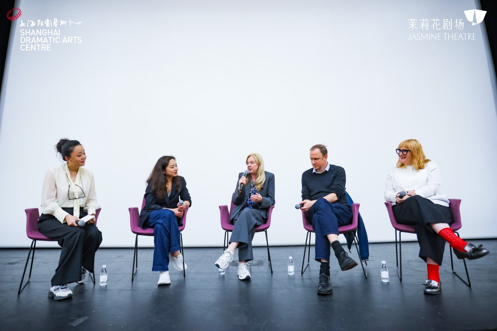 值得一提的是,为了此次“启幕季”,编剧苏茜·米勒、导演贾斯汀·马丁与英国国家剧院数字化副总监卡罗琳·麦迪逊特地来到上海,并在首映结束后举行了主创见面会,与特邀主持人、上海话剧艺术中心演员王一楠展开对谈。活动围绕剧本创作、女性议题及法律伦理等维度,探讨戏剧影像在艺术普及与文化交流中的独特价值。